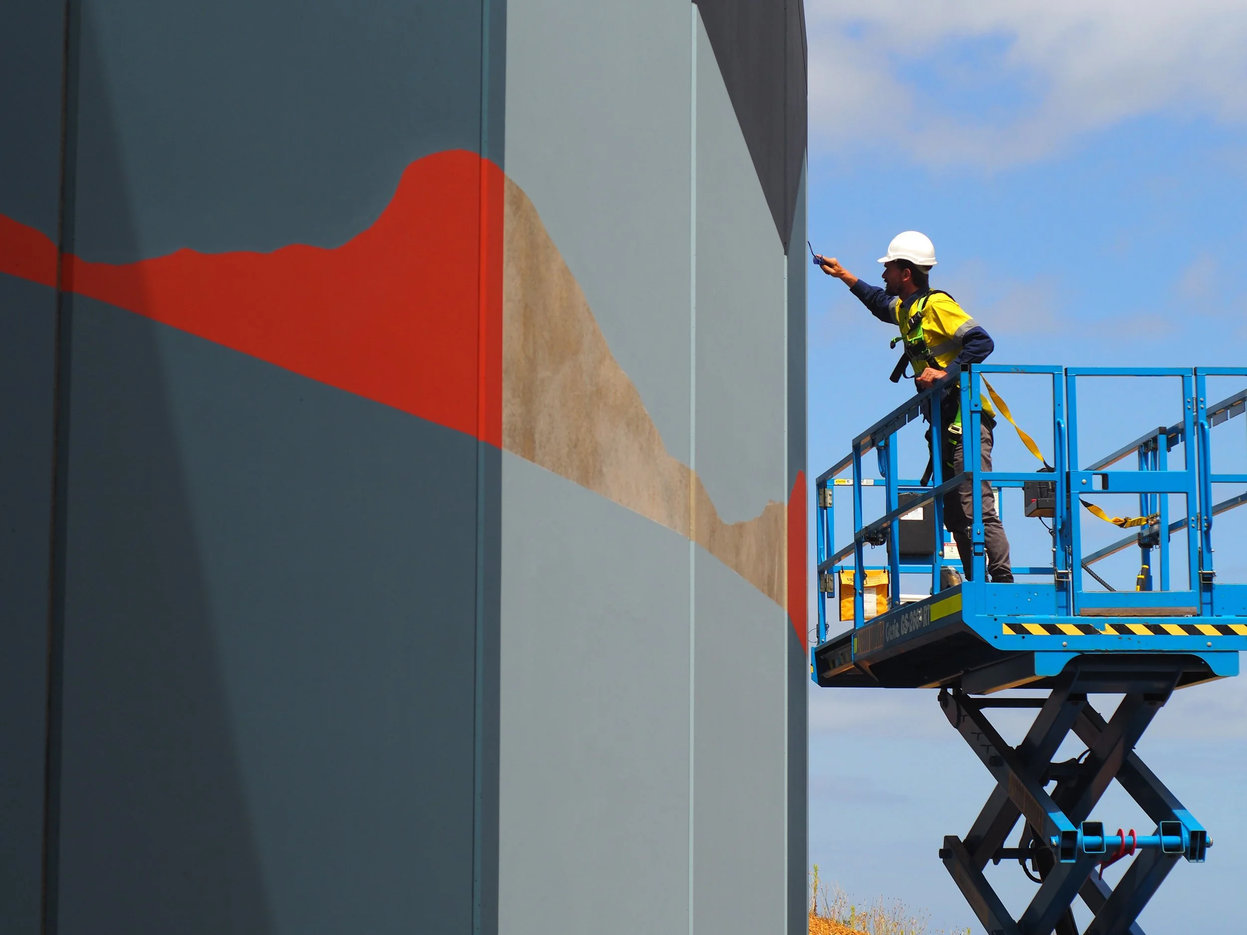 His creative practice spans large scale murals, studio works and site-specific installations.